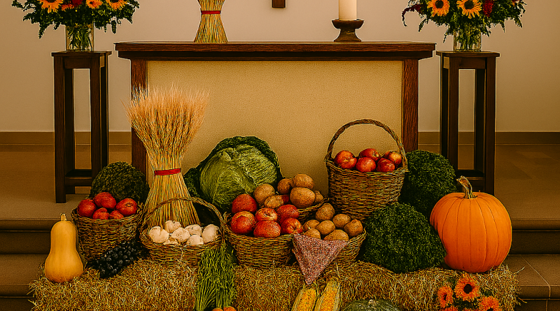 Der Erntedankgottesdienst findet am Sonntag, den 5. Oktober 2025 um 11:15 Uhr in der Apostelkirche statt.