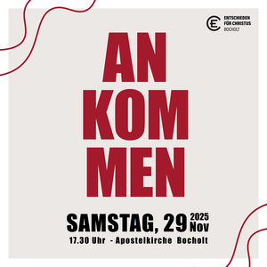 Organisiert von der Jugend unserer Gemeinde findet der Gottesdienst am Samstag, den 29.11.2025, ab 17:30 Uhr in der Apostelkirche statt. Nach den Themen Freundschaft und Abenteuer steht der letzte Jugendgottesdienst dieses Jahres unter dem Motto Ankommen.